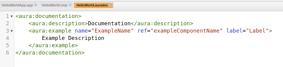 The ‘Documentation’ part is used to document information about your aura component. Click create on the ‘Documentation’ to create the .aura doc file for your aura component.