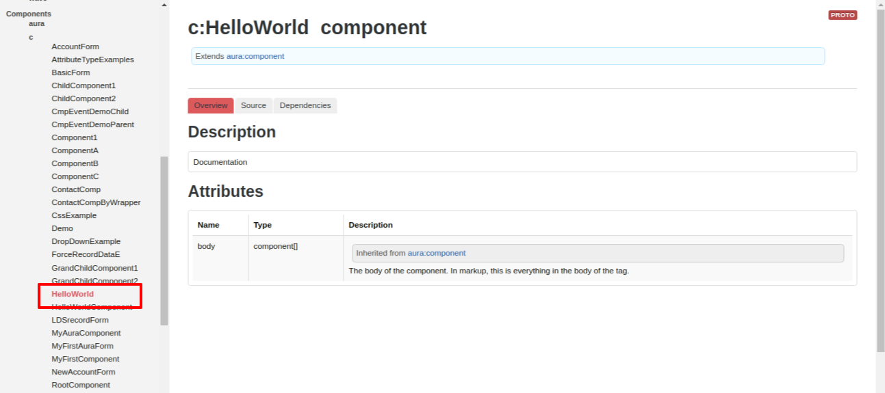 Once created, you go to this to view the documentation for your aura component. The screen will look like this :