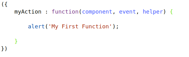 This is a javascript function inside the controller which alerts the ‘My First Function’ value.