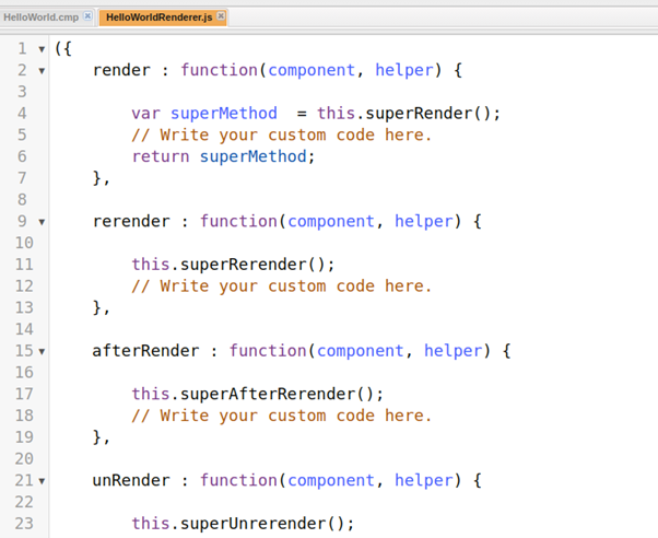 We can override each of these, but we must create the ‘renderer’ for our aura component first.