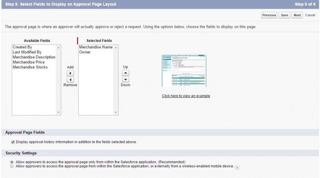 If you are enabling notifications in Salesforce1, please always remember that approvers may view this list of fields on a mobile. Select only those fields which are necessary for users to decide whether to approve or reject records.