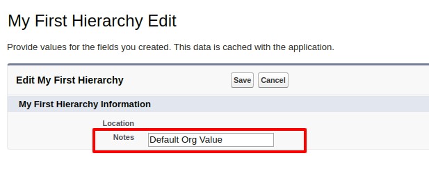 Click Save to save this default record with the ‘Notes’ value as ‘Default Org Value’.