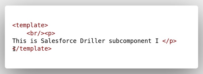 <template> <p>This is Salesforce Driller subcomponent I</p> </template>