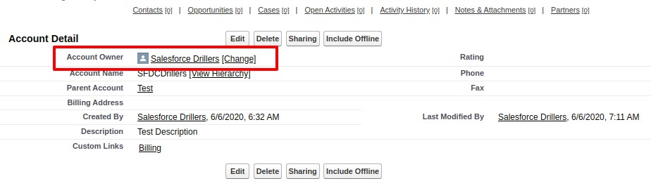 And when I log in as my first user Salesforce Drillers, we can access an Account record :