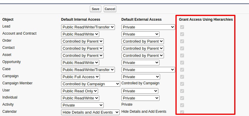 – By Default Salesforce standard objects does not have edit option available on Grant Access Using Hierarchies.