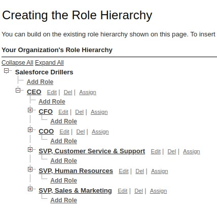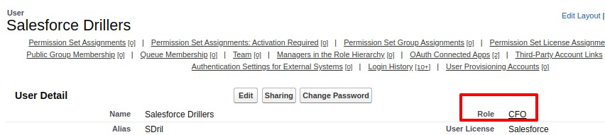Now assign the CEO role to your Salesforce Drillers user and CFO Role to the second Admin 2 User.