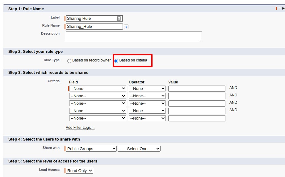 Manual Sharing: Manual sharing allows users to grant one-off access to their individual records for users, public groups and roles.
