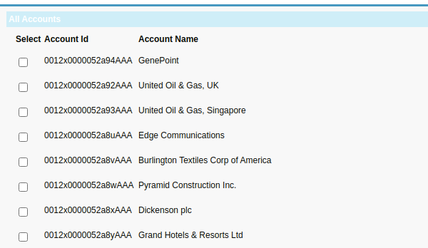 A really common scenario for using wrapper classes is creating a class as per your requirement in order to display it on a visualforce page. Let’s say we want to show a list of Accounts with a checkbox next to each of the records to allow selection.