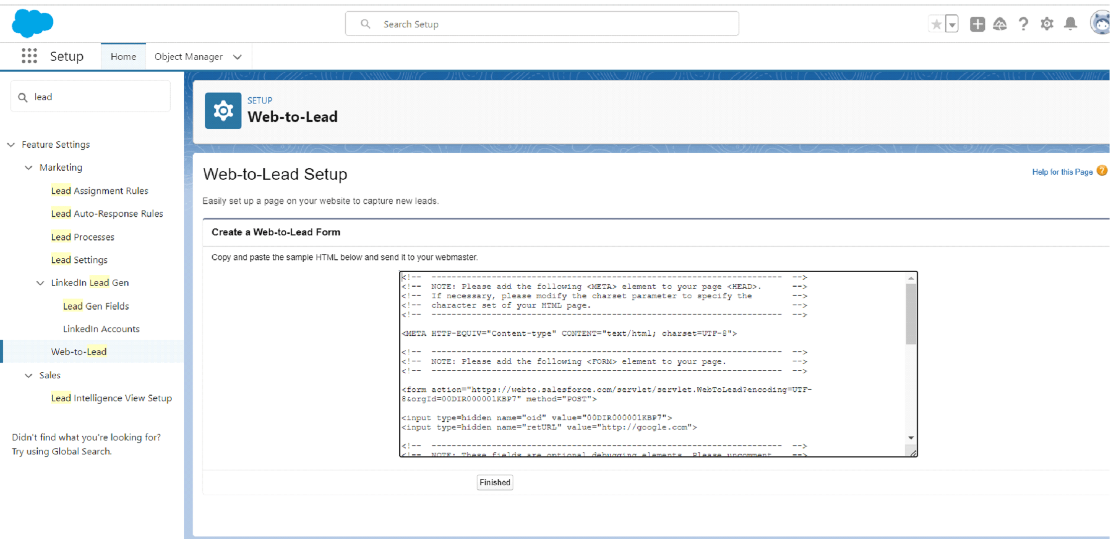 - Ensure that Web-to-Lead is enabled.