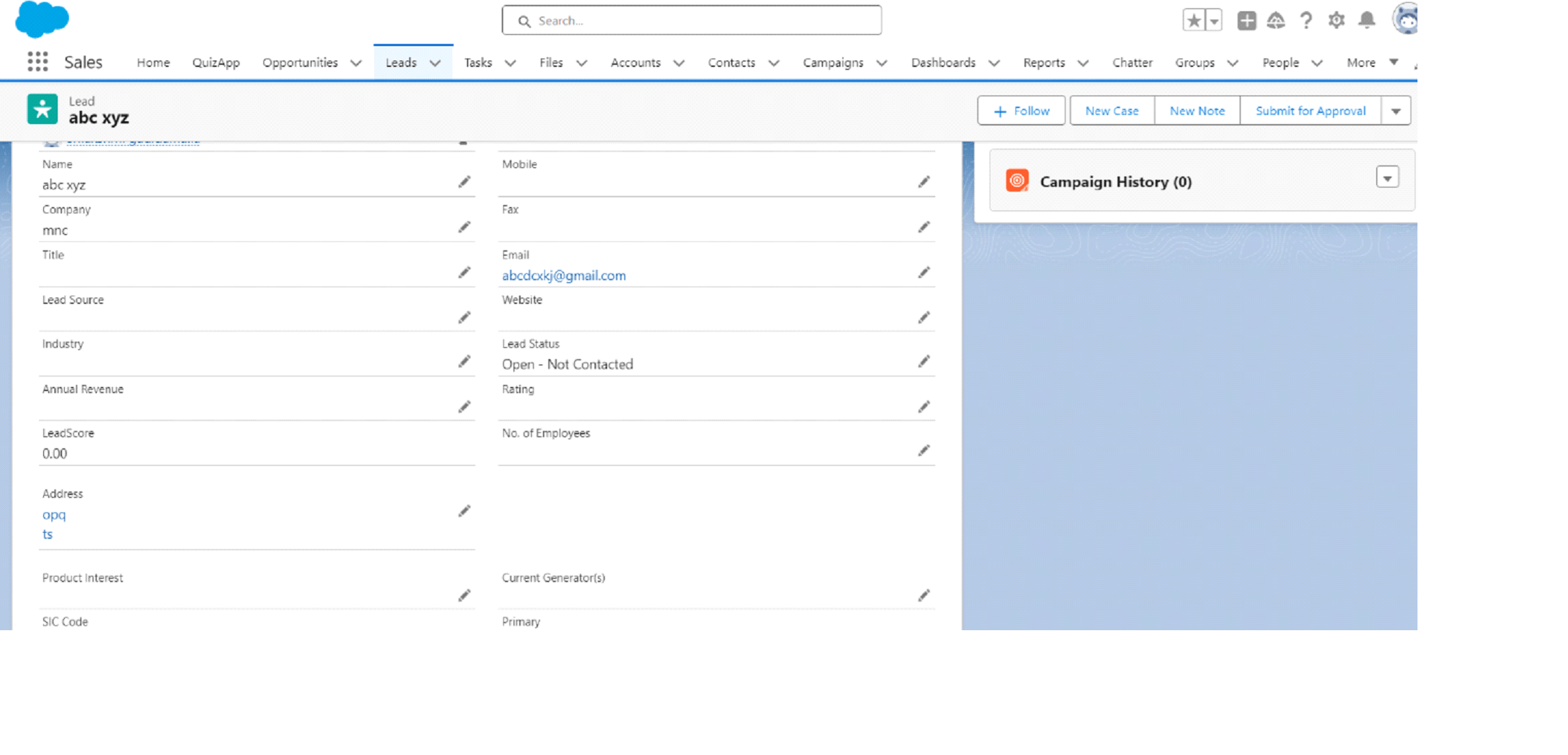 now open sales cloud through app launcher in salesforce, go to leads check the new lead was generated or not.